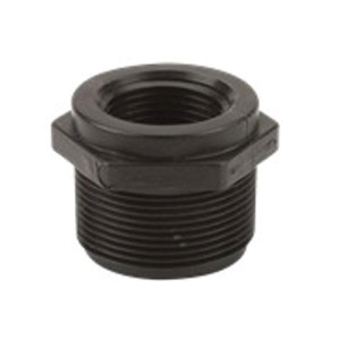 Banjo® Bushing, Connection Type 1: NPT, Gender 1: Male, Connection Size 1: 1-1/2 in, Connection Type 2: NPT, Gender 2: Female, Connection Size 2: 1 in, SCH 80, 150 psi at 70 deg F, Material Construction: Glass Reinforced Polypropylene, Black, Dimensions: 1-21/32 in L, -20 to 150 deg F