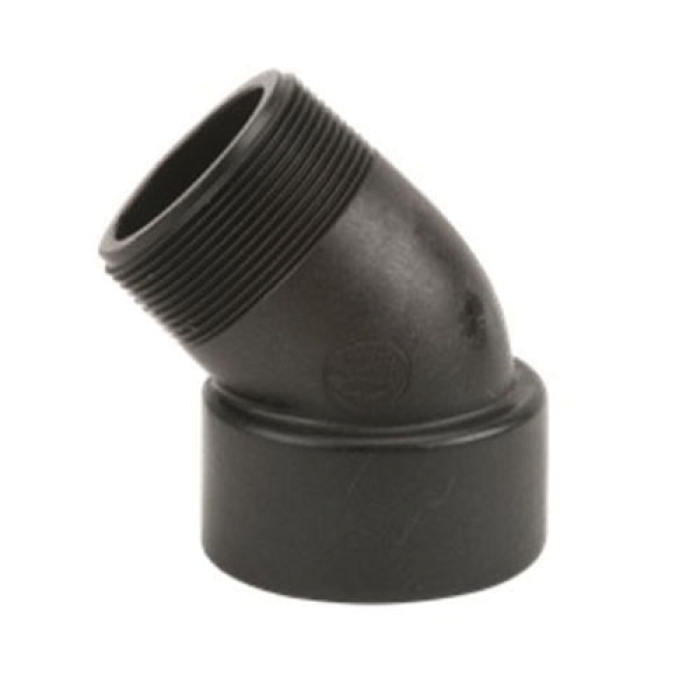 Banjo® 45 deg Street Elbow, Connection Type 1: NPT, Gender 1: Female, Connection Size 1: 2 in, Thread Size 1: 2-11-1/2, Connection Type 2: NPT, Gender 2: Male, Connection Size 2: 2 in, Thread Size 2: 2-11-1/2, 225 psi, SCH 80, Material Construction: Glass Reinforced Polypropylene, Black, -20 to 150 deg F