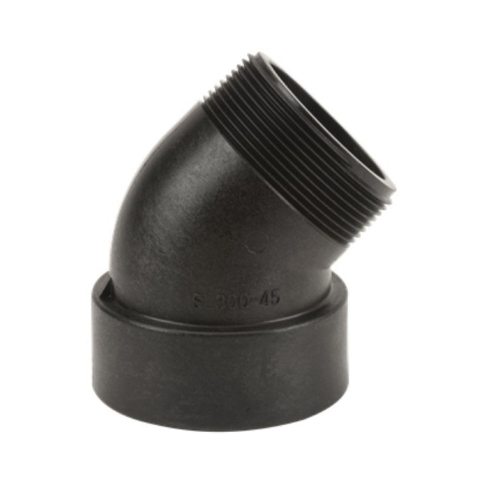 Banjo® 45 deg Street Elbow, Connection Type 1: NPT, Gender 1: Female, Connection Size 1: 3 in, Thread Size 1: 3-8, Connection Type 2: NPT, Gender 2: Male, Connection Size 2: 3 in, Thread Size 2: 3-8, 300 psi, SCH 80, Material Construction: Glass Reinforced Polypropylene, Black, -20 to 150 deg F