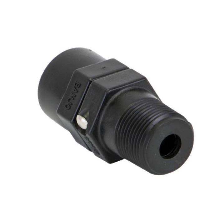 Banjo® Pipe Swivel Coupling, Connection Type 1: NPT, Gender 1: Male, Connection Size 1: 1 in, Connection Type 2: NPT, Gender 2: Female, Connection Size 2: 1 in, 150 psi at 70 deg F, SCH 80, Material Construction: Glass Reinforced Polypropylene, Dimensions: 3-7/16 in L