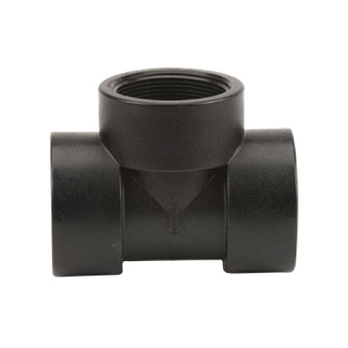 Banjo® Pipe Tee, Connection Type 1: NPT, Gender 1: Female, Connection Size 1: 2 in, Connection Type 2: NPT, Gender 2: Female, Connection Size 2: 2 in, Connection Type 3: NPT, Gender 3: Female, Connection Size 3: 2 in, SCH 80, 300 psi, Material Construction: Glass Reinforced Polypropylene, Black, Dimensions: 4-31/32 in L, -20 to 150 deg F