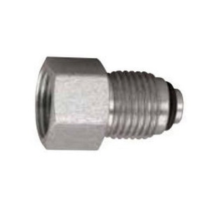 BrakeQuip® Bump Tube Adapter with FKM O-Ring, 30.8 mm Length, Connection Type 1: Female UNF Inverted Seat, Connection Size 1: 5/8-18, Connection Type 2: O-Ring Pilot, Connection Size 2: M16 x 1.5, Hex Size: 3/4 in