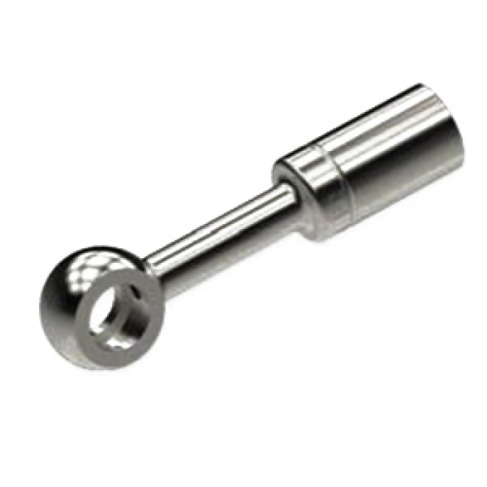 BrakeQuip® Standard Extra Long Neck Round Banjo Fitting, 64 mm Length, 18 mm Width, 10 mm Thickness, Hole Size: 10 mm, Material Construction: Stainless Steel