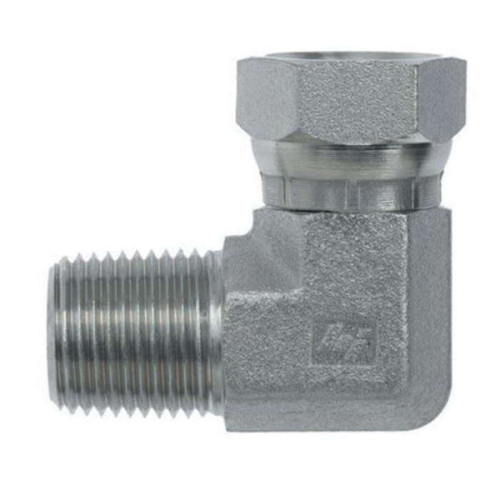 Brennan 90 deg Elbow, Series: 1501, Connection Type 1: NPTF, Gender 1: Male, Connection Size 1: 1/2 in, Thread Size 1: 1/2-14, Connection Type 2: NPSM, Gender 2: Female, Connection Size 2: 1/2 in, Thread Size 2: 1/2-14, Hex Size: 1 in, Dimension Standards: SAE 140230, 3500 psi, Material Construction: Forged Steel