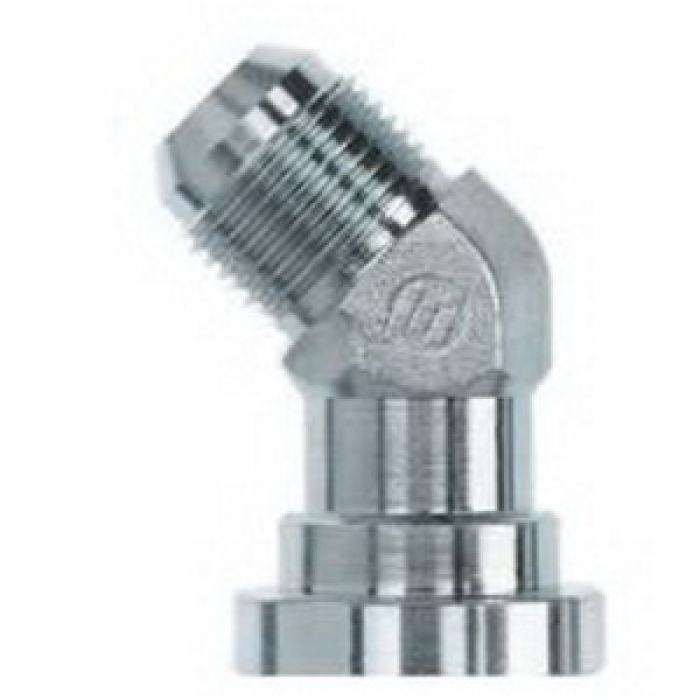 Brennan 45 deg Elbow, Series: 1703-FG, Connection Type 1: SAE Code 61 Flange, Connection Size 1: 1-1/4 in, Connection Type 2: JIC, Gender 2: Male, Connection Size 2: 1-1/4 in, Thread Size 2: 1-5/8-12 UN, Hex Size: 1-5/8 in, Material Construction: Forged Steel
