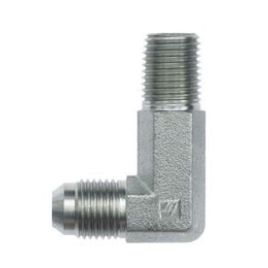 Brennan 90 deg Long Elbow, Series: 2501-L, Connection Type 1: SAE 37 deg JIC, Gender 1: Male, Connection Size 1: 1 in, Thread Size 1: 1-5/16-12, Connection Type 2: NPTF, Gender 2: Male, Connection Size 2: 1 in, Thread Size 2: 1-11-1/2, Hex Size: 1.312 in, Dimension Standards: SAE 071502, 4800 psi, Material Construction: Stainless Steel