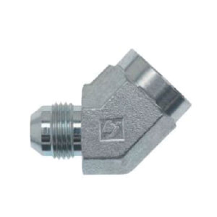 Brennan 45 deg Elbow, Series: 2505, Connection Type 1: SAE 37 deg JIC, Gender 1: Male, Connection Size 1: 3/8 in, Thread Size 1: 9/16-18, Connection Type 2: NPTF, Gender 2: Female, Connection Size 2: 3/8 in, Thread Size 2: 3/8-18, Hex Size: 7/8 in, 6000 psi, Material Construction: Steel