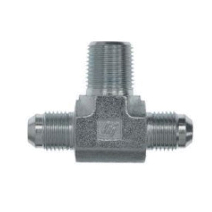 Brennan Branch Tee, Series: 2601, Connection Type 1: 37 deg JIC Flare, Gender 1: Male, Connection Size 1: 3/8 in, Thread Size 1: 9/16-18, Connection Type 2: 37 deg JIC Flare, Gender 2: Male, Connection Size 2: 3/8 in, Thread Size 2: 9/16-18, Connection Type 3: NPTF, Gender 3: Male, Connection Size 3: 3/8 in, Thread Size 3: 3/8-18, Hex Size: 3/4 in, Dimension Standards: SAE 070425, MS 51512, 7200 psi, Material Construction: Stainless Steel, 2.28 in Length