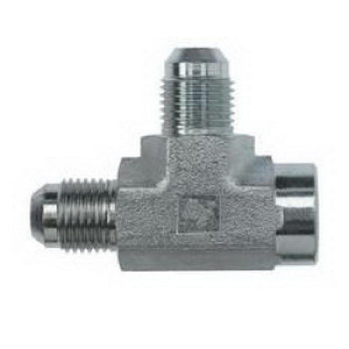 Brennan 2606 Steel Run Tee, 7/8 in Male SAE 37 deg JIC x 3/4 in FNPTF x 7/8 in Male SAE 37 deg JIC