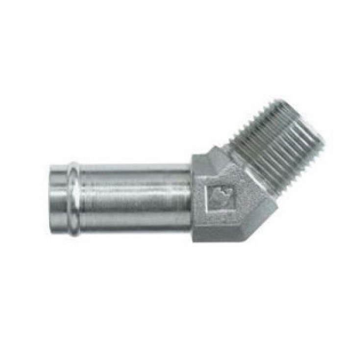 Brennan 45 deg Elbow, Series: 4503, Connection Type 1: Hose Barb, Connection Size 1: 5/8 in, Connection Type 2: NPTF, Gender 2: Male, Connection Size 2: 1/2 in, Thread Size 2: 1/2-14, Material Construction: Steel