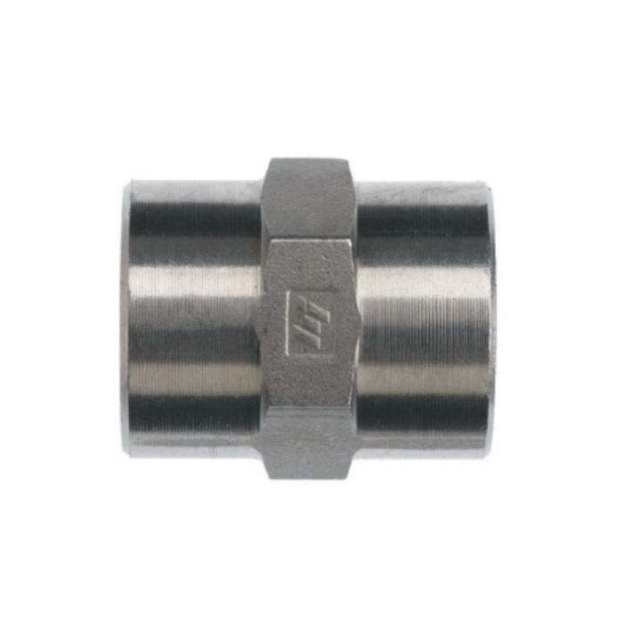 Brennan Straight Adapter, Series: 5000, Connection Type 1: NPTF, Gender 1: Female, Connection Size 1: 1/4 in, Thread Size 1: 1/4-18, Connection Type 2: NPTF, Gender 2: Female, Connection Size 2: 1/4 in, Thread Size 2: 1/4-18, Hex Size: 3/4 in, Dimension Standards: SAE 140138, 6000 psi, Material Construction: Steel, 1.13 in Length