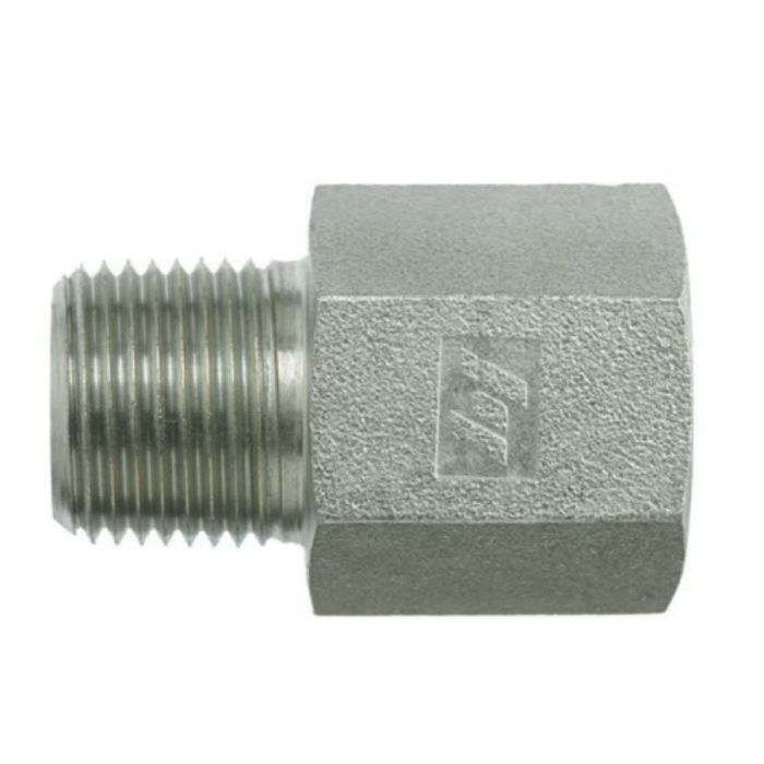 Brennan Straight Expander, Series: 5405, Connection Type 1: NPTF, Gender 1: Male, Connection Size 1: 3/4 in, Thread Size 1: 3/4-14, Connection Type 2: NPTF, Gender 2: Female, Connection Size 2: 1 in, Thread Size 2: 1-11-1/2, Hex Size: 1-5/8 in, Dimension Standards: SAE 140139, 3000 psi, Material Construction: Steel, 2.18 in Length
