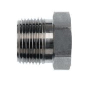 Brennan Straight Reducer Bushing, Series: 5406, Connection Type 1: NPTF, Gender 1: Male, Connection Size 1: 1 in, Thread Size 1: 1-11-1/2, Connection Type 2: NPTF, Gender 2: Female, Connection Size 2: 3/8 in, Thread Size 2: 3/8-18, Hex Size: 1-3/8 in, Dimension Standards: SAE 140140, 5400 psi, Material Construction: Stainless Steel, 1.36 in Length