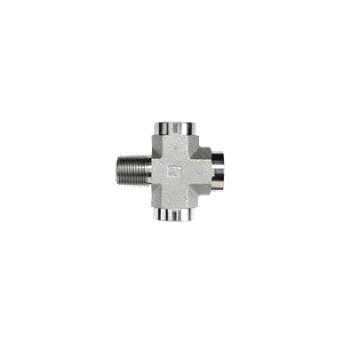 Brennan Cross, Series: 5655-FG, Connection Type 1: NPTF, Gender 1: Male, Connection Size 1: 3/4 in, Thread Size 1: 3/4-14, Connection Type 2: NPTF, Gender 2: Female, Connection Size 2: 3/4 in, Thread Size 2: 3/4-14, Connection Type 3: NPTF, Gender 3: Female, Connection Size 3: 3/4 in, Thread Size 3: 3/4-14, Connection Type 4: NPTF, Gender 4: Female, Connection Size 4: 3/4 in, Thread Size 4: 3/4-14, Hex Size: 1.312 in, 4000 psi, Material Construction: Forged Steel, 2.95 in Length
