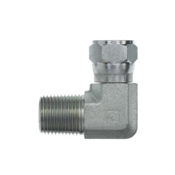 Brennan 90 deg Elbow, Series: 6501, Connection Type 1: SAE 37 deg JIC Swivel, Gender 1: Female, Connection Size 1: 5/16 in, Thread Size 1: 1/2-20, Connection Type 2: NPTF, Gender 2: Male, Connection Size 2: 1/8 in, Thread Size 2: 1/8-27, Hex Size: 5/8 in, 6000 psi, Material Construction: Steel