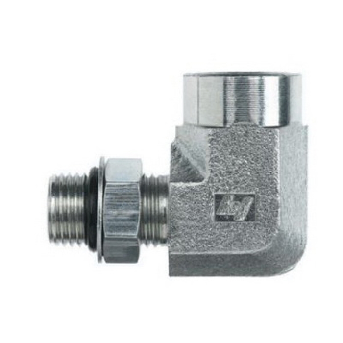 Brennan 90 deg Elbow, Series: 6805-NWO-FG, Connection Type 1: SAE ORB, Gender 1: Male, Connection Size 1: 1 in, Thread Size 1: 1-5/16-12, Connection Type 2: NPTF, Gender 2: Female, Connection Size 2: 7/8 in, Thread Size 2: 3/4-14, Hex Size: 1-1/2 in, 4000 psi, Material Construction: Forged Steel