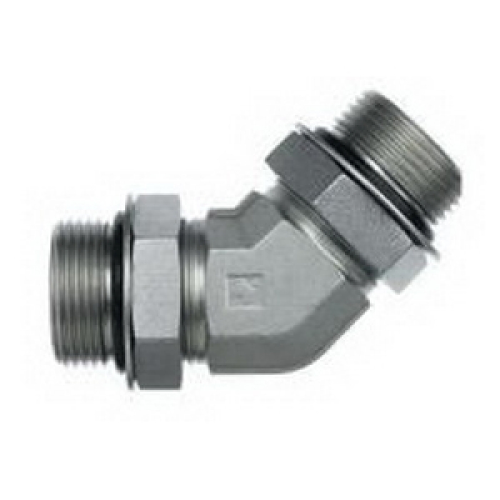 Brennan 45 deg Elbow, Series: 6808-NWO-FG, Connection Type 1: SAE ORB, Gender 1: Male, Connection Size 1: 1/2 in, Thread Size 1: 3/4-16, Connection Type 2: SAE ORB, Gender 2: Male, Connection Size 2: 1/2 in, Thread Size 2: 3/4-16, Hex Size: 7/8 in, 6000 psi, Material Construction: Forged Steel