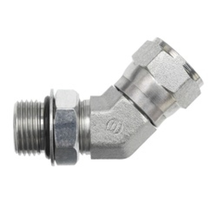 Brennan 45 deg Elbow, Series: 6810-NWO Series, 45 deg Elbow Fitting, 1/2 in Connection Size 1, Tube OD Connection Type 1, 1/2 in Connection Size 2, Threaded Connection Type 2, Tube|Threaded Connection, Steel, Steel Material Construction, 3/4-16 x 3/4-16 Thread, 7/8 in Hex