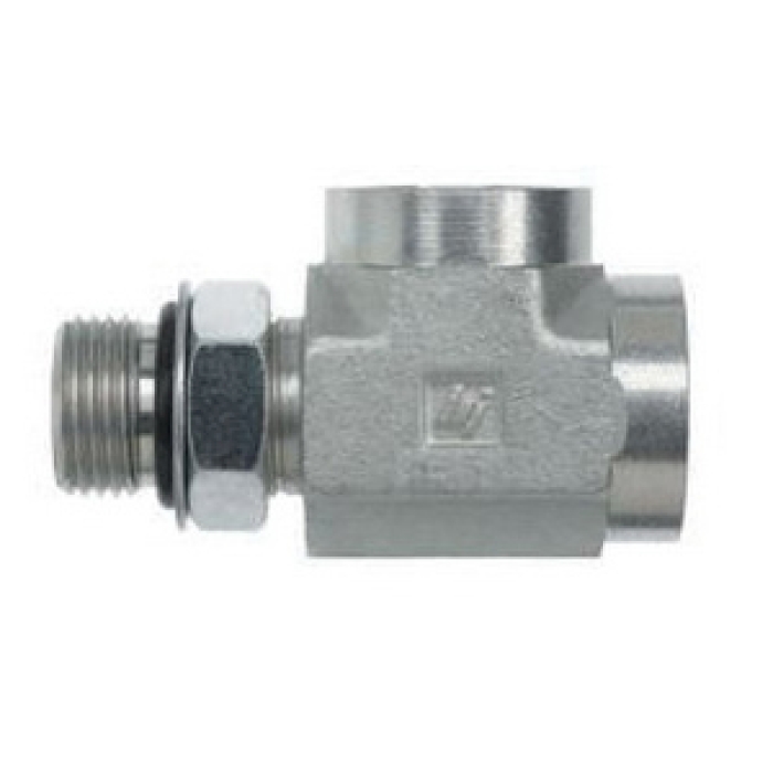 Brennan Branch Tee, Series: 6835-NWO-FG, Connection Type 1: SAE ORB, Gender 1: Male, Connection Size 1: 3/8 in, Thread Size 1: 9/16-18, Connection Type 2: SAE ORB, Gender 2: Female, Connection Size 2: 3/8 in, Thread Size 2: 9/16-18, Connection Type 3: SAE ORB, Gender 3: Female, Connection Size 3: 3/8 in, Thread Size 3: 9/16-18, Hex Size: 0.688 in, Material Construction: Forged Steel, 2.13 in Length