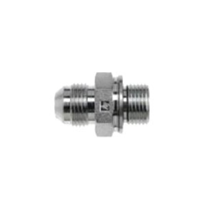 Brennan 7001 Steel Straight Adapter with O-Ring and Retaining Ring, 12 mm Male Metric x 1/4 in Male 37 deg JIC