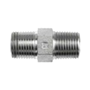 Brennan Straight Nipple, Series: 7030, Connection Type 1: BSPT, Gender 1: Male, Connection Size 1: 1-1/4 in, Thread Size 1: 1-1/4-11, Connection Type 2: NPTF, Gender 2: Male, Connection Size 2: 1-1/4 in, Thread Size 2: 1-1/4-11-1/2, Hex Size: 42 mm, 3000 psi, Material Construction: Steel, 61.9 mm Length