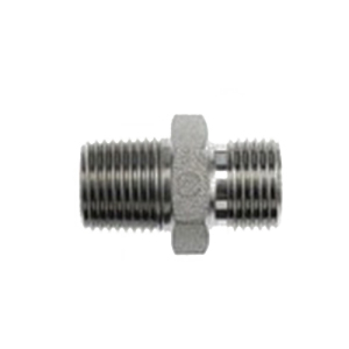 Brennan Straight Nipple, Series: 7032, Connection Type 1: BSPP, Gender 1: Male, Connection Size 1: 1/8 in, Thread Size 1: 1/8-27, Connection Type 2: NPTF, Gender 2: Male, Connection Size 2: 1/8 in, Thread Size 2: 1/8-27, Hex Size: 14 mm, 5000 psi, Material Construction: Steel, 26 mm Length
