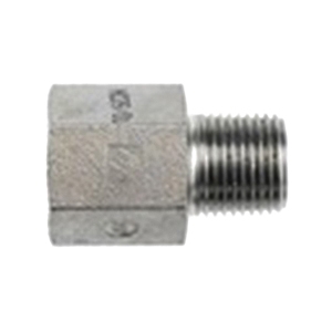 Brennan Straight Adapter, Series: 7040, Connection Type 1: BSPT, Gender 1: Male, Connection Size 1: 1/8 in, Thread Size 1: 1/8-28, Connection Type 2: NPTF, Gender 2: Female, Connection Size 2: 1/8 in, Thread Size 2: 1/8-27, Hex Size: 15 mm, 6000 psi, Material Construction: Steel, 26.4 mm Length