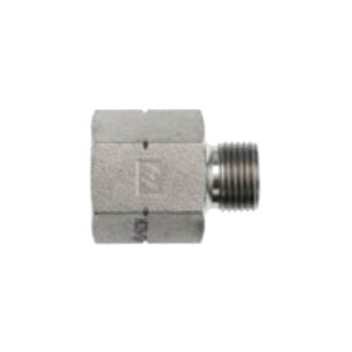 Brennan Straight Adapter, Series: 7045, Connection Type 1: Metric, Gender 1: Male, Connection Size 1: 16 mm, Thread Size 1: M16 x 1.5, Connection Type 2: NPTF, Gender 2: Female, Connection Size 2: 1/2 in, Thread Size 2: 1/2-14, Hex Size: 28 mm, 5000 psi, Material Construction: Steel, 40 mm Length