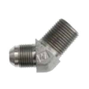 Brennan 45 deg Elbow, Series: 7100-FG, Connection Type 1: BSPT, Gender 1: Male, Connection Size 1: 1/8 in, Thread Size 1: 1/8-28, Connection Type 2: 37 deg JIC Flare, Gender 2: Male, Connection Size 2: 1/4 in, Thread Size 2: 7/16-20, Hex Size: 12 mm, 6000 psi, Material Construction: Forged Steel