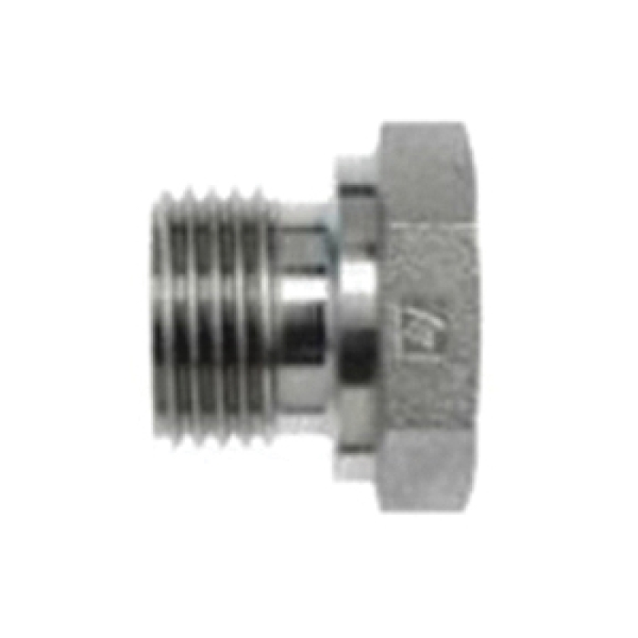 Brennan Straight Adapter with 60 deg Seat, Series: 9023, Connection Type 1: BSPP, Gender 1: Male, Connection Size 1: 3/4 in, Thread Size 1: 3/4-14, Connection Type 2: BSPP, Gender 2: Female, Connection Size 2: 3/8 in, Thread Size 2: 3/8-19, Hex Size: 32 mm, 4000 psi, Material Construction: Steel, 28.2 mm Length
