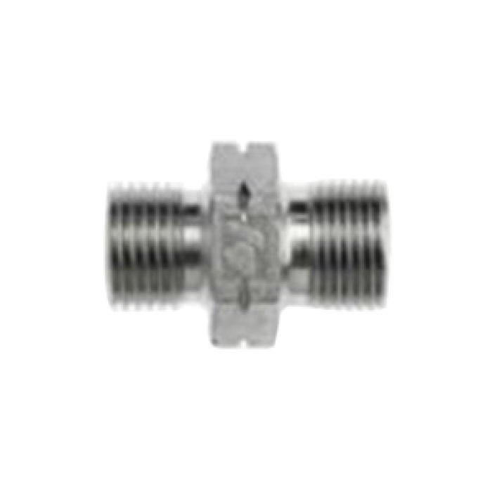 Brennan Straight Nipple with 60 deg Seat, Series: 9025, Connection Type 1: BSPP, Gender 1: Male, Connection Size 1: 3/8 in, Thread Size 1: 3/8-19, Connection Type 2: Metric, Gender 2: Male, Connection Size 2: 1-1/4 in, Thread Size 2: M20 x 1.5, Hex Size: 25.4 mm, Material Construction: Steel, 35 mm Length