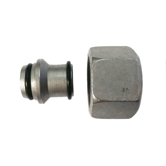 Brennan Heavy-Duty Cap and Nut, Series: D8003, Connection Type 1: Metric Bite DIN Tube, Connection Size 1: 38 mm, Thread Size 1: M52 x 2, Dimension Standards: DIN 2353, ISO 8434-1, Material Construction: Steel