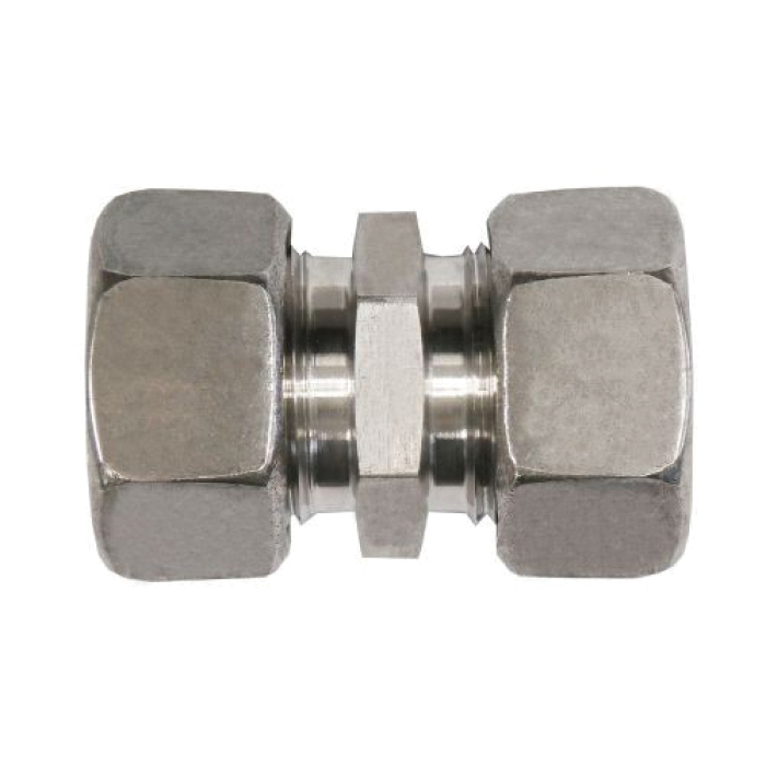 Brennan D8060-NBR Carbon Steel Light-Duty Straight Coupling, 8 mm Metric Bite DIN Tube x 8 mm Metric Bite DIN Tube