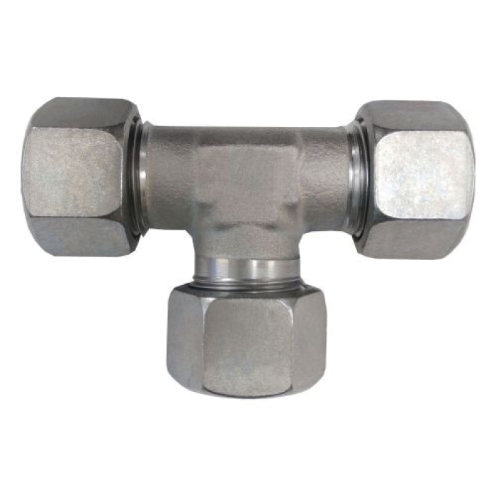Brennan D8360-NBR Carbon Steel Light-Duty Equal Tee, 15 mm Metric Bite DIN Tube x 15 mm Metric Bite DIN Tube x 15 mm Metric Bite DIN Tube