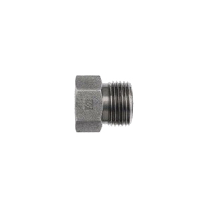 Brennan Straight Adapter, Series: FS0403, Connection Type 1: ORFS, Gender 1: Male, Connection Size 1: 5/8 in, Connection Type 2: Bore, Connection Size 2: 5/8 in, Thread Size 2: 1-14, Hex Size: 1.062 in, Dimension Standards: SAE 520104, Material Construction: Steel, 1.07 in Length, 0.33 in Height