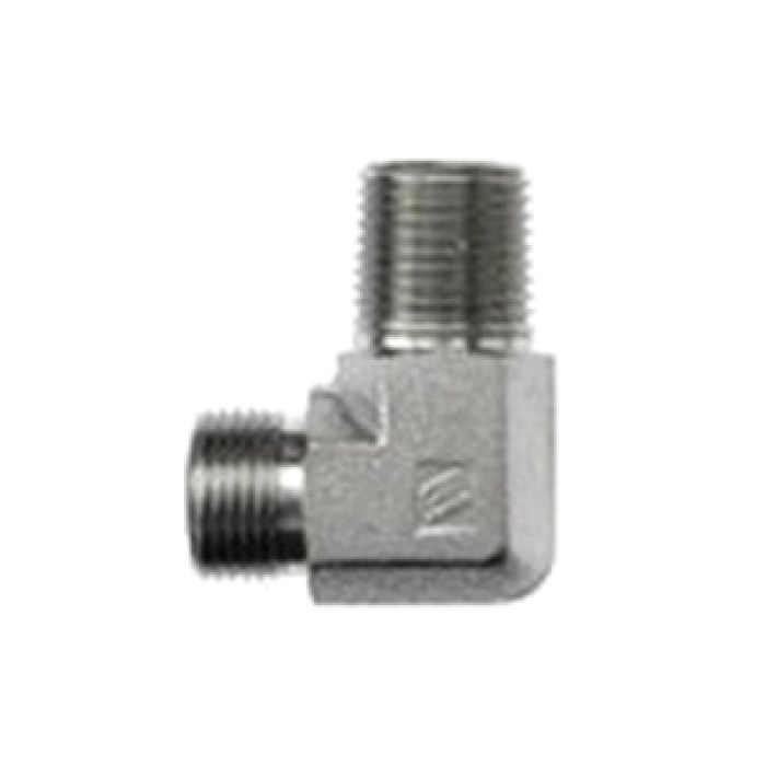 Brennan 90 deg Elbow, Series: FS2501-FG, Connection Type 1: ORFS, Gender 1: Male, Connection Size 1: 1 in, Thread Size 1: 1-7/16-12, Connection Type 2: NPT, Gender 2: Male, Connection Size 2: 1 in, Thread Size 2: 1-11-1/2, 4500 psi, Material Construction: Forged Steel