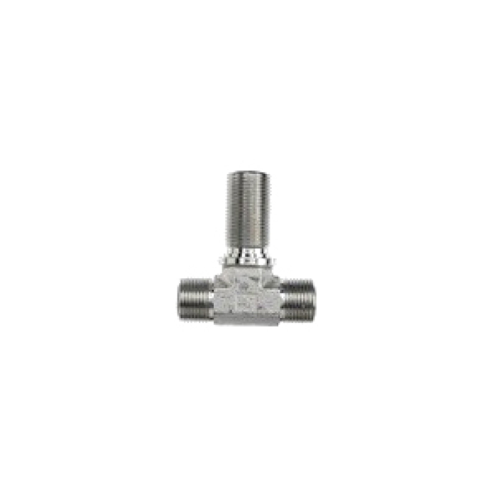 Brennan Bulkhead Branch Tee, Series: FS2703-FG, Connection Type 1: ORFS, Gender 1: Male, Connection Size 1: 3/8 in, Thread Size 1: 11/16-16, Connection Type 2: ORFS, Gender 2: Male, Connection Size 2: 3/8 in, Thread Size 2: 11/16-16, Connection Type 3: ORFS, Gender 3: Male, Connection Size 3: 3/8 in, Thread Size 3: 11/16-16, Hex Size: 3/4 in, 9200 psi, Material Construction: Forged Steel, 1.04 in Length