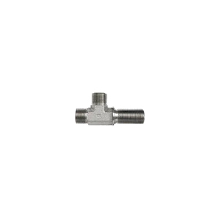 Brennan Bulkhead Run Tee, Series: FS2704-FG, Connection Type 1: ORFS, Gender 1: Male, Connection Size 1: 3/8 in, Thread Size 1: 11/16-16, Connection Type 2: ORFS, Gender 2: Male, Connection Size 2: 3/8 in, Thread Size 2: 11/16-16, Connection Type 3: ORFS, Gender 3: Male, Connection Size 3: 3/8 in, Thread Size 3: 11/16-16, Hex Size: 3/4 in, Dimension Standards: SAE 520201, 9200 psi, Material Construction: Forged Steel, 3.07 in Length