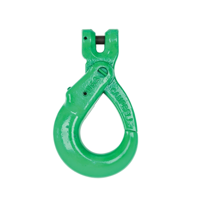 Campbell® Quik-Alloy® Self Locking Clevis Hook, Series: CAM-LOK, 1/2 in Trade, Load Capacity: 15000 lb, Grade: 100, Hook Opening: 2-1/4 in, 0.563 in Eye Diameter, Material Construction: Alloy Steel, Finish: Painted, Green, Dimensions: 5.404 in W