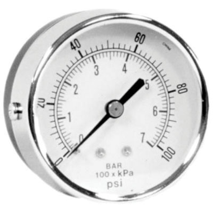 Cato Western Dry Utility Vacuum Gauge, Series: VMB, Measuring System: psi, bar, Pressure Range: -30 to 0 in-Hg, Connection Size: 1/4 in MPT, 2 in Dial Size, 3-2-3 % Accuracy, Analog Display, Center Back Mount, Steel Case