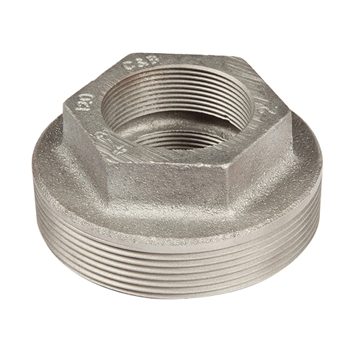 Heavy-duty cast iron double tapped bushings for use on underground or aboveground storage tanks. Internal and external threads are true, for straight piping runs. NPT threads are standard.