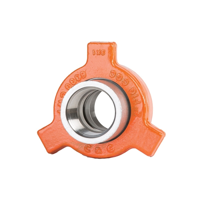 CNC Flow Control Guiberson Style Hammer Union, Series: Figure 607, Connection Type 1: NPT, Connection Size 1: 1-1/2 in, Thread Size 1: 1-1/2-11-1/2, Connection Type 2: NPT, Connection Size 2: 1-1/2 in, Thread Size 2: 1-1/2-11-1/2, 6000 psi, Material Construction: Alloy Steel, Orange/Silver, Dimensions: 4.12 in W, Dimension Standards: AISI 4130