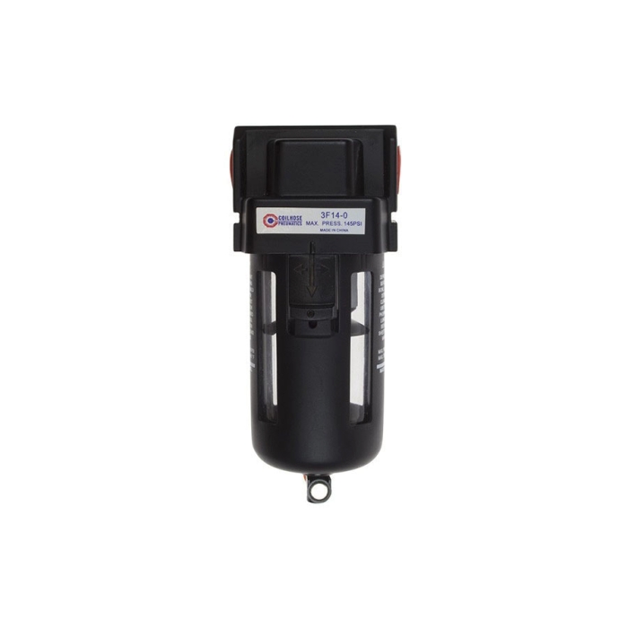 Coilhose® Compact Filter/Regulator, Series: 29, Inlet Pipe Size: 1/4 in, 53 cfm, Pressure Regulating Range: 5 - 120 psi, 145 psi, 32 - 140 deg F, Remove Down Particle Size: 40 um, Material Construction: Polycarbonate, Polycarbonate Bowl, Dimensions: 2.08 in W x 2.08 in D x 5.07 in H