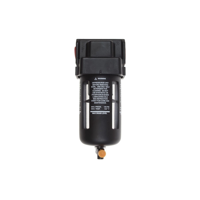 Coilhose® Compact Filter/Regulator, Series: 29, Inlet Pipe Size: 3/8 in, 53 cfm, Pressure Regulating Range: 5 - 120 psi, 145 psi, 32 - 140 deg F, Remove Down Particle Size: 40 um, Material Construction: Polycarbonate, Polycarbonate Bowl, Dimensions: 2.08 in W x 2.08 in D x 5.07 in H