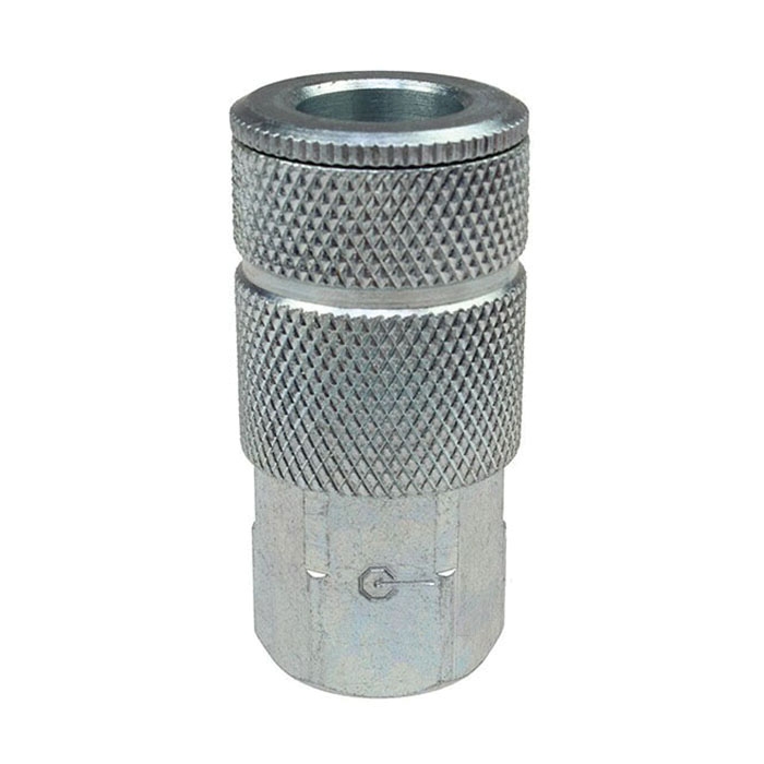 Coilhose® Automotive Type 15 Manual Coupler, Connection Type 1: Quick Disconnect, Connection Size 1: 3/8 in, Connection Type 2: NPT, Gender 2: Female, Connection Size 2: 1/4 in, 300 psi, Material Construction: Steel, Finish: Zinc-Plated, -40 to 250 deg F