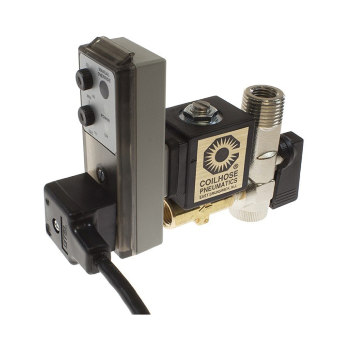 The solid state automatic drain allows moisture to be released from accumulation points at specified cycle times. Comes standard with an electronic timer for automatic operation at the application or operation from a remote location.