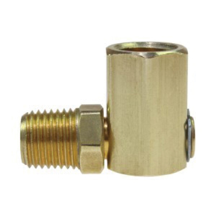 Coilhose® 90 deg Swivel Elbow, Connection Type 1: NPT, Gender 1: Female, Connection Size 1: 1/4 in, Connection Type 2: NPT, Gender 2: Male, Connection Size 2: 1/4 in, Material Construction: Brass