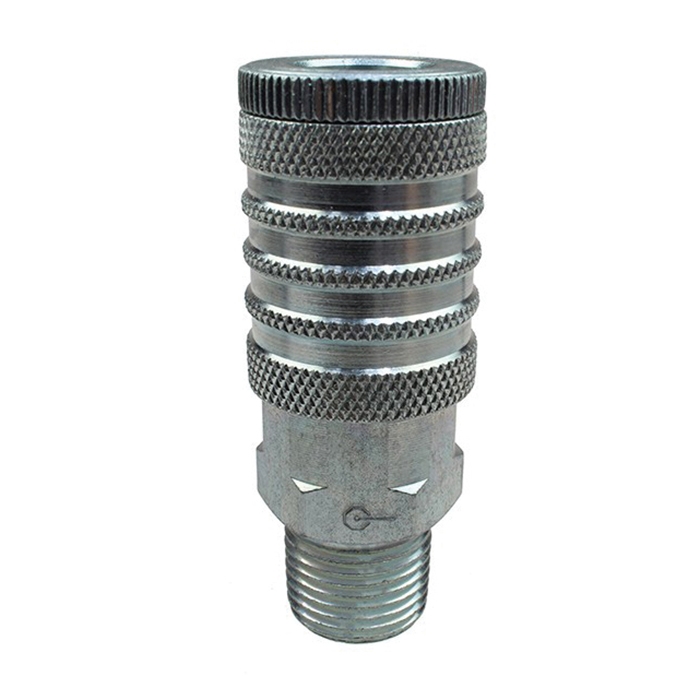 Coilhose® Megaflow® Industrial Manual Coupler, Connection Type 1: Quick Disconnect, Connection Size 1: 1/4 in, Connection Type 2: NPT, Gender 2: Male, Connection Size 2: 1/4 in, 300 psi, Material Construction: Steel, Finish: Plated, -40 to 250 deg F