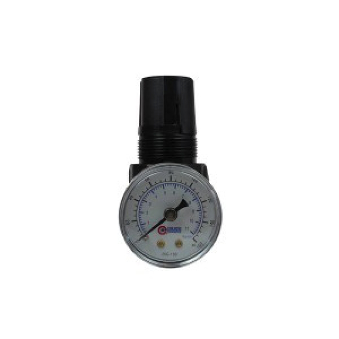 Coilhose® Gauge Regulator, Series: Miniature, Inlet Pipe Size: 1/4 in, Outlet Pipe Size: 1/4 in, Pressure Regulating Range: 0 - 125 psi, 250 psi, Material Construction: Die-Cast Zinc, Dimensions: 1-1/2 in Dia x 2-7/8 in H