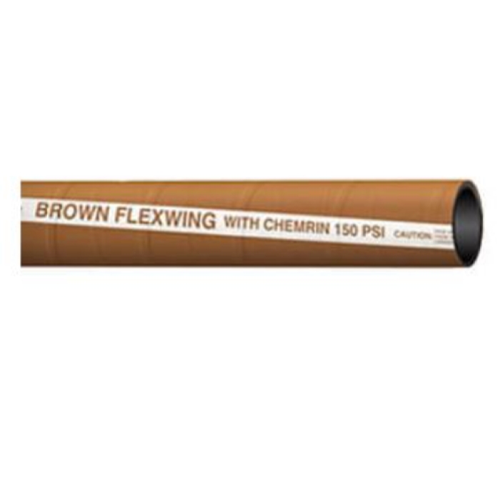 Continental Flexwing® Chemical Transfer Hose, Nominal Size: 1 in, 1.47 in OD, 1 in ID, 1 ft Length, 150 psi, Material Construction: Chemrin® Synthetic Rubber, EPDM Cover, Construction: Spiral-Plied Synthetic Fabric with Double Wire Helix, Brown, 4 in Bend Radius, -30 deg F Low, 275 deg F High